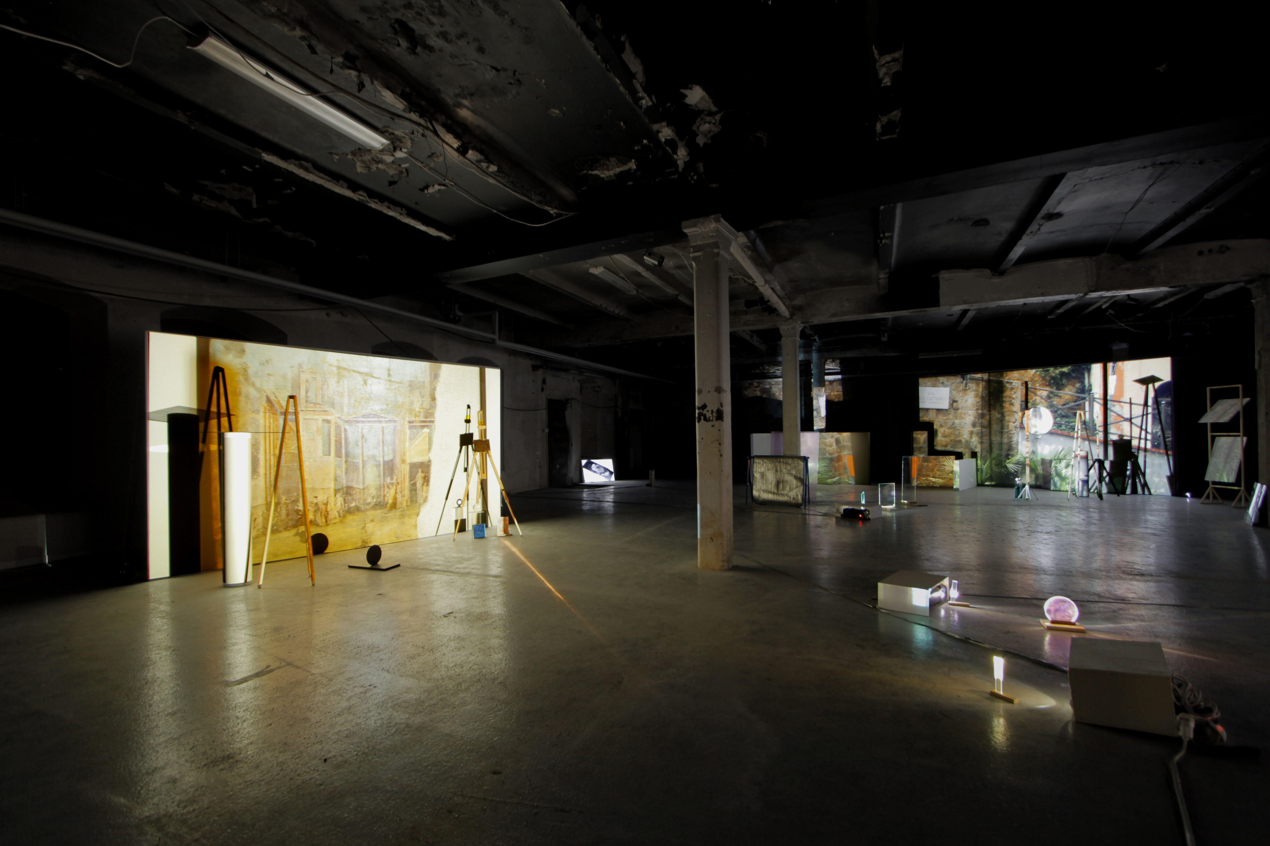 Displacements of the Visible is a large-scale video installation that relates to theories and places where the Italian nature and optics researcher Giambattista Della Porta (1535-1615) worked and lived, mainly in the area around Naples. The city of Naples has been rebuilt, altered, restored, demolished and displays layers of both past and present. The installation combines early optical elements and the possibilities of current digital techniques, while the form of the work offers a constructed multi-dimensional state in which we are simultaneously experiencing multiple time ranges.
